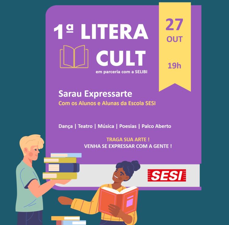 Os alunos e alunas do Ensino Fundamental II e do Ensino Médio da Escola SESI Araraquara (CE 339), convidam para o Sarau Expressarte, que compõe a programação da SELIBI (Semana do Livro e da Literatura).