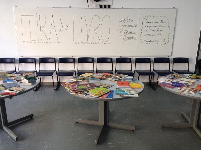 Foram os alunos, portanto, que procuraram a professora de Língua Portuguesa Caroline Arantes para que, em parceria com a equipe da biblioteca e dos demais docentes, realizassem no dia 27 de junho de 2019 uma feira do livro, aos moldes de uma feira ocorrida há tempos na unidade. O funcionamento seguiu-se da seguinte maneira: durante as semanas que antecederam o final das aulas do semestre, os estudantes e funcionários trouxeram livros em bom estado à biblioteca, que fez a troca por uma unidade monetária criada pelos organizadores do evento: as patacas literárias.