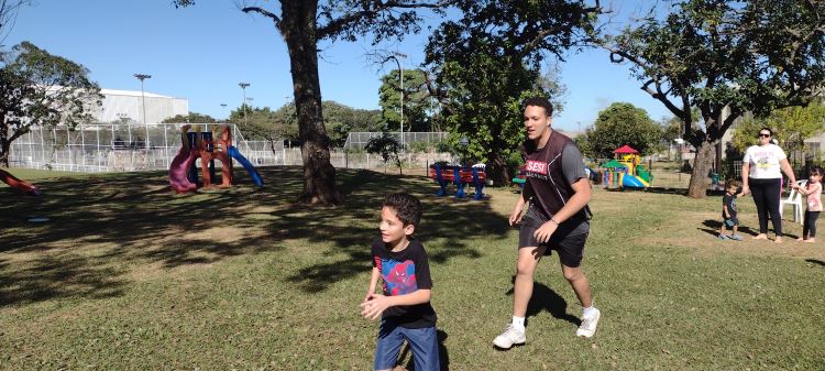 Jogos e brincadeiras como “Cabo de Guerra”, “Bexiga Vai e Vem” e uma “Caça ao Tesouro” pelo SESI.