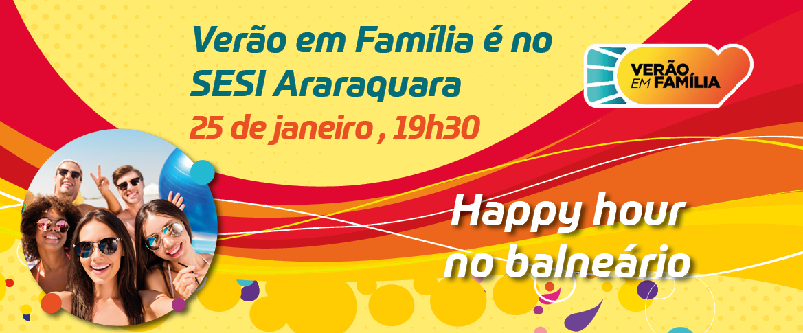 Sexta-feira é o dia mundial da curtição, por isso o Sesi Araraquara convida você, sua família e amigos para curtirem conosco um happy hour no melhor estilo “barzinho na piscina”. O evento será realizado no dia 25 de janeiro, sexta-feira, às 19h30, com entrada gratuita.